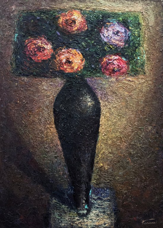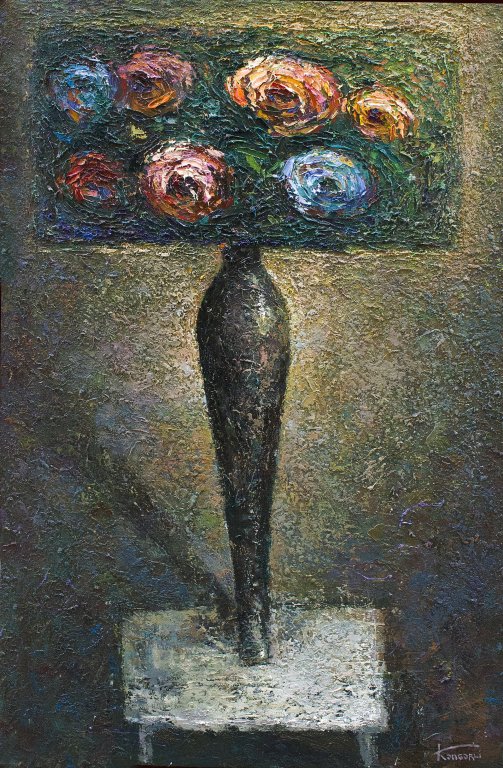 Yuxuyabənzər təsvirlər, sanki şüuraltının dərinliklərindən peyda olub, onların qıraqları isə lay-lay boya ilə oyulub.