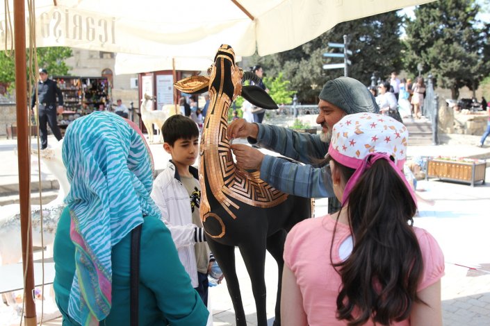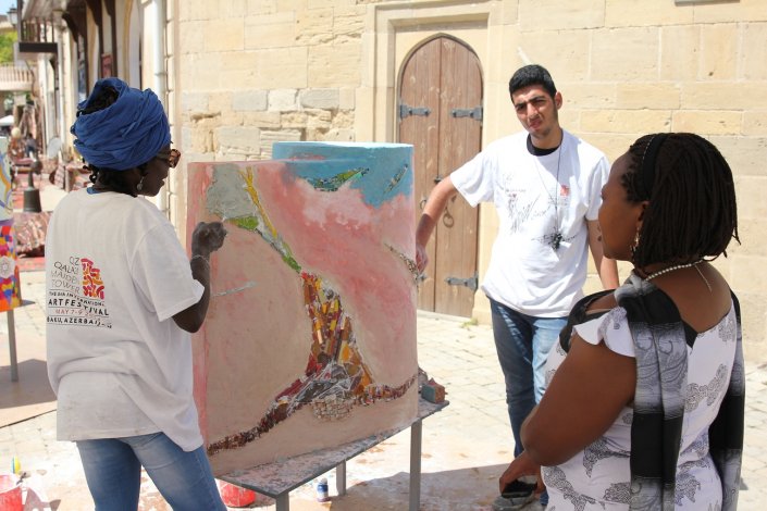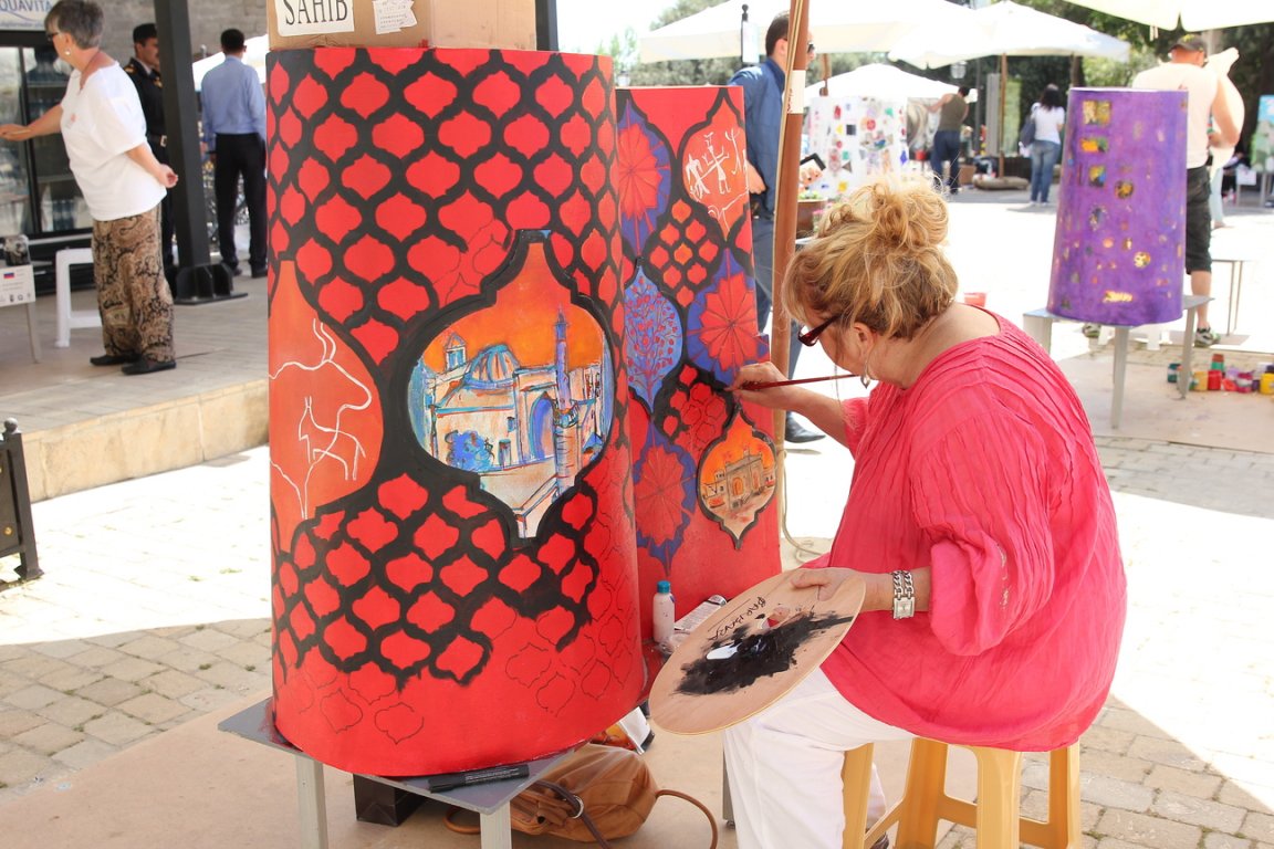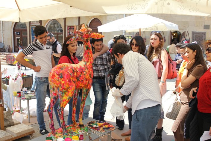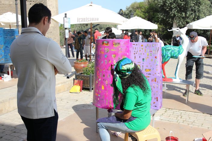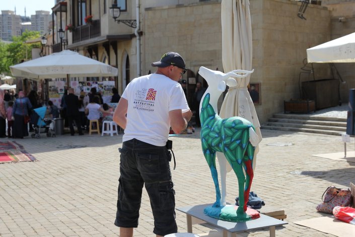 The V “Qız Qalası” (Maiden Tower) International Art Festival was held in Baku on May 7-9, 2014. The festival was attended by 28 artists from 26 countries. The festival also featured 3D painting, one of the most popular forms of street art in the world. Each participant was provided with a model of the Maiden’s Tower or Jeyran, paint, etc., necessary to create a festival masterpiece. Masters worked in the open air for two days, in front of passers-by and connoisseurs of art. Decorating small models of the Maiden Tower and Jeyran with patterns in their national and artistic styles, the artists created works that reflect the synthesis and interchange of different cultures, customs and traditions. Unique works will be further demonstrated in different countries of the world.