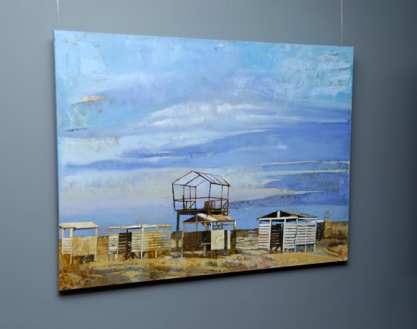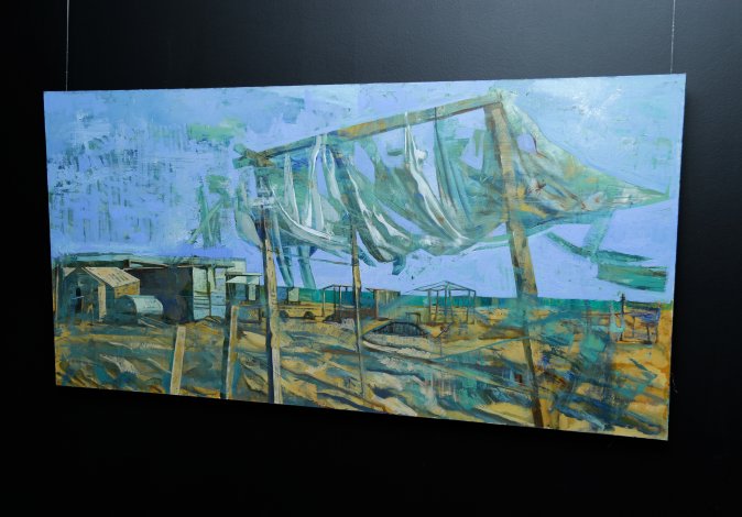 Butunay Haqverdiyevın fərdi sərgisi. 21 iyul – 03 avqust, 2022 Mənzərə janrı heç də ilk baxışdan göründüyü qədər sadə və asan deyil. Bu janr çərçivəsində rəssam təbiətin həm özünə, həm də onun güclə sezilən hallarına hədsiz dərəcədə çox yaxınlaşır. Bundan başqa mənzərə təbiətin emosional vəziyyətinin kor-koranə təqlidi və kopyalanması deyil, onun düşünülmüş şəkildə dərk edilməsi, insanlara ötürülməsidir. Mahir təsvir savadına və rəsm texnikasına sahib olması Butunay Haqverdiyevə qarşısında insan əməyi ilə yaradılan rəsm olduğunu unutduraraq duyğularını bütün tamlığı ilə çatdırmağa imkan verir. Sən isə sadəcə olaraq düşünürsən ki, insan cansız boyaların köməyi ilə mütləq reallığı bu cür canlandırmağı, cisimlərin, xüsusən də, nadir sovet maşınlarının təbiətini göstərməyi, insan iştirakının illüziyasını yaratmağı necə bacara bilmişdir. Butunayın əsərlərində hər şey harmoniya içərisindədir, doğma Abşeronun təbiəti sakit və mülayimdir. Sənətkar bu vəziyyətə işığın incə qradasiyalarının köməyi ilə nail olur. Müəllif texnikadakı ustalığının sayəsində rəsm çəkərkən hiss etdiyi harmoniyanı bizə çatdırır. Biz rəssamın hər bir əsərini sevgi ilə yaratdığını hiss edirik. Müəllif bizə yayın sonunun, payızın yaxınlaşmasının havada cüzi hiss olunduğu vəziyyəti çatdırıb. Rəssamın yaratdığı hər bir mənzərə əhval-ruhiyyənin mənzərəsi, Abşerona sevgi etirafıdır. Butunayın kətanlarında böyük sənətkarı digərlərindən fərqləndirən hamıya tanış olan obrazda başqalarının gözündən qaçan anlıq məqamı göstərmək bacarığı var. Rəssam keçmişi və indini möcüzəvi şəkildə bir kətanın üzərində birləşdirir, lirik mənzərə isə dünyanın quruluşunun fəlsəfi dərkinin dərinliyini əldə edir. Butunayın rəsmləri kompozisiyasına görə mürəkkəb olmayan süjeti və sadəliyi ilə tamaşaçıların baxışlarını cəlb edir. Günəşlə işıqlandırılan köhnə avtomobillər işıq və kölgənin füsunkar oyununu yaradır. Rəssamın detallara olan diqqəti, kompozisiya ilə həssas işi insanı valeh edir, sadə mənzərəni əsl real sənətin gerçək bir nümunəsinə çevirir.