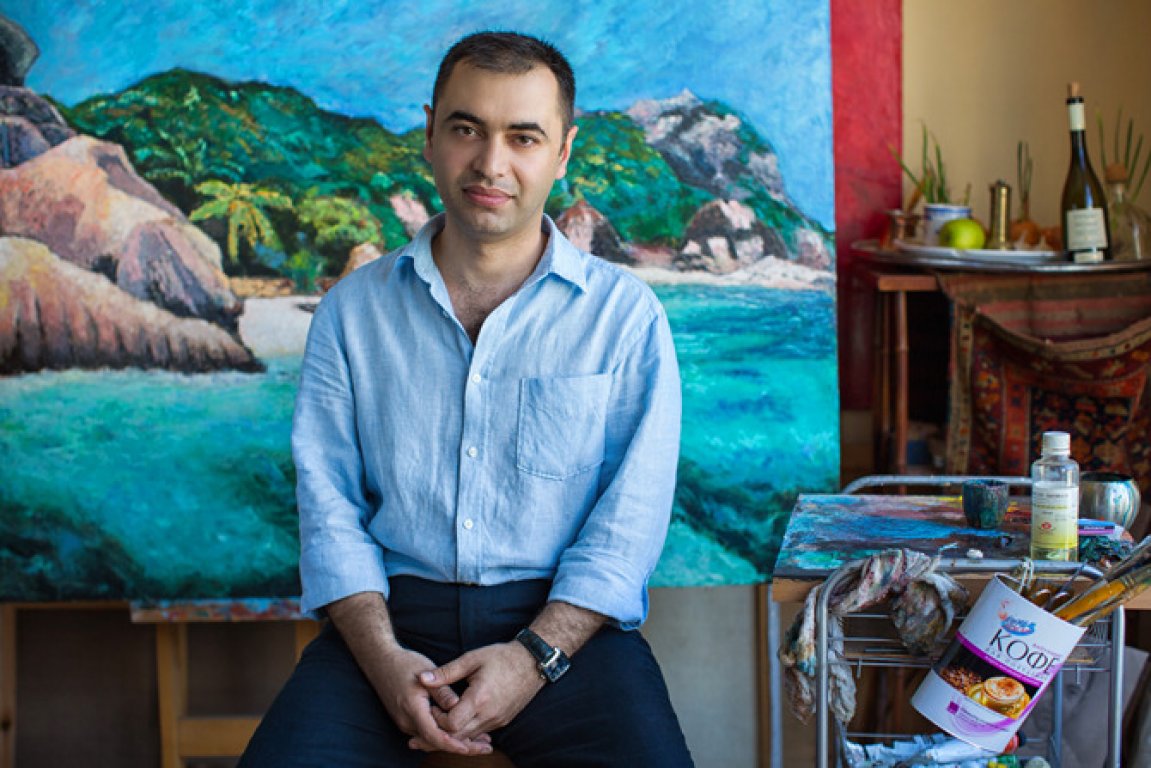 QGallery presents solo exhibition of the artist Anar Yolchiyev – “On the distant shores”. Exposition includes the artist’s pictorial and graphic works, created during his journeys to islands of Indian Ocean and Indonesia. The sphere of visual art is experiencing unprecedented complications during the last decades in all levels: organizational, infrastructural, thematic, formal and above all, in conceptual level. The artists are transformed to researchers, political activists, scientists, managers, whether the art itself to extremely sophisticated media of rapid developments diagnostics in the society. But the growing number of arts people and philosophers talk about waste of the art’s core values and about where to expect renewal and a fresh air. Outstanding theatre director and innovator Vsevolod Meyerhold has used to say as far back as in the beginnings of the last century: “The theatre will be saved by dilettantes”. Which means “amateurs”, who really love the art and don’t use it for immediate income or for satisfaction of professional vanity. But let’s make an important slip: the artist about whom we will talk further is not a dilettante in the conventional (neglectful) sense. Despite the lack of professional education in the field of arts, he is the member of Union of Artists, being exhibited systematically and his works are housed in private collections in different countries of the world. Undoubtedly, Anar Yolchiyev is a true artist and a professional in its full meaning. But his professional competence is related to professionalism of those category of rare artists, who developed throughout their artwork potential of pure, immediate perception of the world, observed among children, which unfortunately is being lost during the maturity and socialization. Exactly in this meaning above the aspect of “love to art” was mentioned, not unlike “the life to wisdom”, constituting etymological definition of philosophy. Pablo Picasso considered more late periods of his creative life as the peak of his artwork, when he managed to gain naïve, childlike vision and often repeated that he had to pass through all his life to finally learn and describe the world as a child does. Innocence and clarity of the pure perception – these are the basic words, defining the best characteristics of the artworks of such great masters as Henri Matisse, Picasso, Fernand Leger, not to mention Henri Rousseau and Niko Pirosmani as direct representatives of “innocent art”. Anar Yolchiyev succeeds traditions of these masters. In his creativity he applies to various genres, but gives preference mainly to landscape. His attempt to capture the purest and substantial in the surrounding reality – its natural beauty, yet not spoiled with active and unfortunately, often destructive involvement of the modern human is clearly evident. Anar draws sea, sky, trees…as if he is the witness of their centuries-old splendor. As the objects of the nature existed before the human, and most likely will exist after him. When the artist with all his open heart and pure perception draws nature motif, he sometimes manages to catch the most difficult – vivid presence of nature itself, “gazing” at us. We may clearly observe it, for instance, in the artworks of Paul Cezanne, who is capable to draw endlessly the same landscape motif, when we start feeling that it’s not the artist contemplating the nature, but the nature itself is looking at the artist – that’s how unique “frequency-wave” resonance emerges between the soul of an artist and the World’s Soul. Something similar, consciously or unconsciously is being intended by Anar Yolchiyev, describing the nature as if depicted piece contains all the universal energy, but not cold and indifferent to human, but quite the contrary, as staring at him, attentively observing his actions and ready to take substantial role in his destiny. But only deeply loving soul of an artist is able to catch the tiny state of nature’s openness to human. According to his paintings, Anar has exactly the same kind of soul. The soul of a child within the adult. (Teymur Daimi, artist, philosopher) *** Anar Yolchiyev was born on 03.11.1974 in Baku. After graduating from the Azerbaijan State Oil Academy in 1996 has worked at Azercell company. During 2010-2011 has worked at the of Azerbaijan Republic’s President’s administration office. Has started painting since 1999. Since 2002 Anar is an active participant at different exhibitions. In 2011 he was enrolled to the Union of Artists of Azerbaijan. Works by Anar Yolchiyev are housed in private collections in Azerbaijan, Belgium, Russia, Georgia and Turkey.